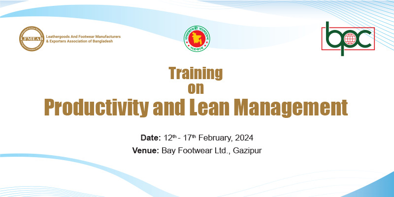 Feb112024EventsDate: 12th-17th February Venue: Bay Footwear Ltd. Category: EventsBy Anika Afrin SwarnaFebruary 11, 2024 Share this post Share on FacebookShare on Facebook Share on XShare on X Pin itShare on Pinterest Share on LinkedInShare on LinkedIn Author: Anika Afrin Swarna Post navigationPreviousPrevious post:ToT on Occupational Health and Safety and Chemical Management SystemNextNext post:Leadership Skill TrainingRelated postsLEATHERTECH Bangladesh 2025December 3, 202521st Annual General MeetingJanuary 5, 2025General MeetingOctober 1, 2024Inauguration Ceremony of LFMEAB Digitalization ProgramJune 12, 2024Workshop on costing and negotiation skillsApril 22, 2024Leadership Skill Development for SupervisorsFebruary 27, 2024